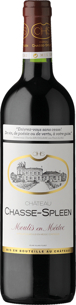 Château Chasse-Spleen ist neben Château Poujeaux das führende Moulis-Weingut. Obwohl er nur als Cru Bourgeois klassifiziert ist, übertrifft er regelmässig viele der bekannteren klassifizierten Gewächse des Médoc. Hinter dem eher ungewöhnlichen Namen des Schlosses ranken sich zwei Theorien: Erstens, als Lord Byron 1821 das Anwesen besuchte, bemerkte er: Quel remède pour chasser le spleen. Zweitens, dass es nach Baudelaires Gedicht Milz benannt ist. Die Weine von Chasse-Spleen waren immer bemerkenswert, obwohl sich die Qualität mit der Übernahme durch die Taillan-Gruppe, die auch das Château Haut-Bages-Libéral besitzt, im Jahr 1976 dramatisch verbesserte. Es wurde von Bernadette Villars geführt, bis sie und ihr Mann bei einem Unfall ums Leben kamen beim Wandern in den Pyrenäen im Jahr 1992. Das Anwesen wird heute von ihrer Tochter Claire geführt. Der Wein von Chasse-Spleen ist eine Assemblage aus 65% Cabernet Sauvignon, 30% Merlot und 5% Petit Verdot. Er reift 18 Monate in Eichenfässern (40% neu) und wird unfiltriert abgefüllt. Chasse-Spleen-Weine sind am Gaumen typischerweise tief gefärbt und vollmundig und zeigen Unmengen von reifen, schwarzen Früchten, Mineralien und manchmal einen Hauch von Schokolade.